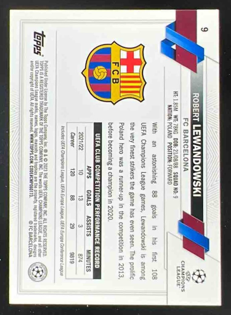 2022 Topps Chrome Gold Lava Refractor #9 Robert Lewandowski