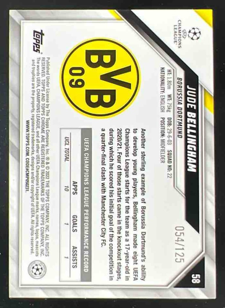 2021 Topps Chrome Rose Gold Mini Diamond Refractor #58 Jude Bellingham /125