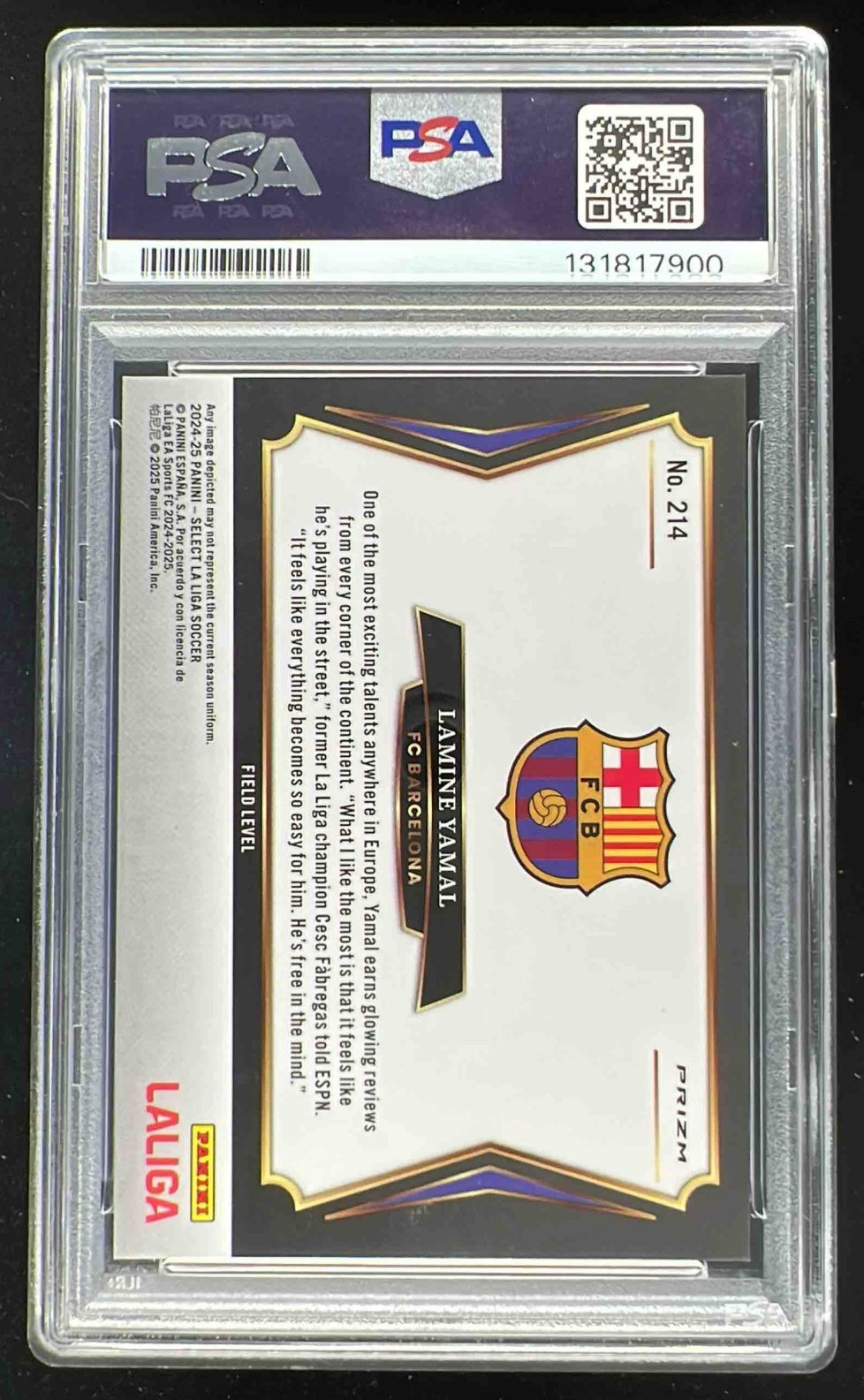 2024 Select La Liga White Sparkle Prizm #214 Lamine Yamal Field Level PSA 9