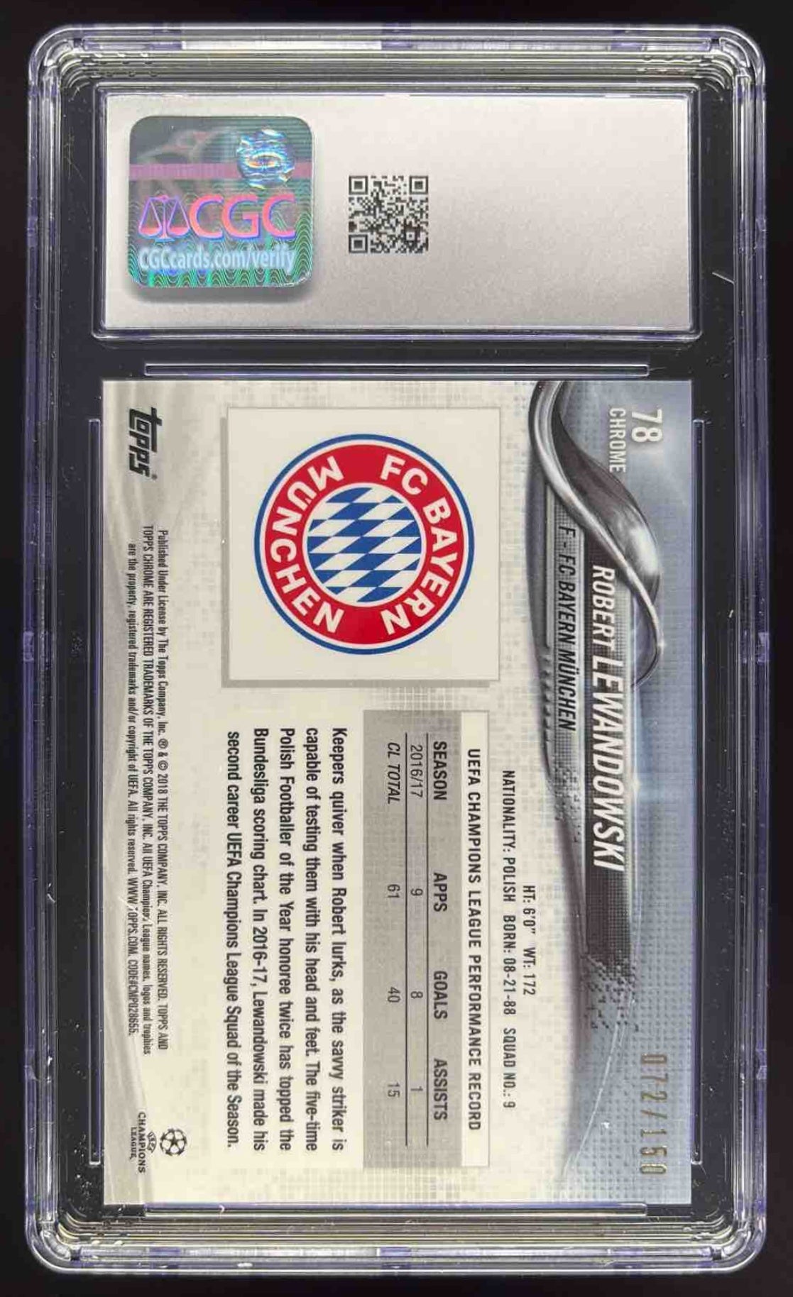 2017 Topps Chrome UEFA Blue Refractor #78 Robert Lewandowski /150 CGC 10