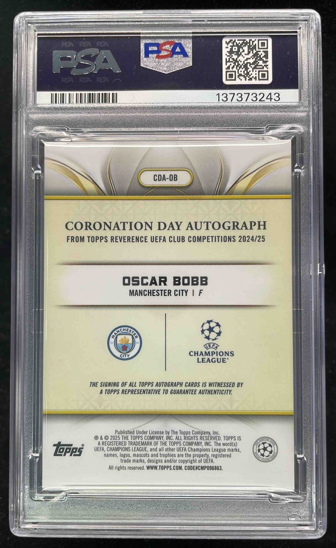 2024-25 Topps Reverence Coronation Day Black #CDA-OB Oscar Bobb Auto /10 PSA 9