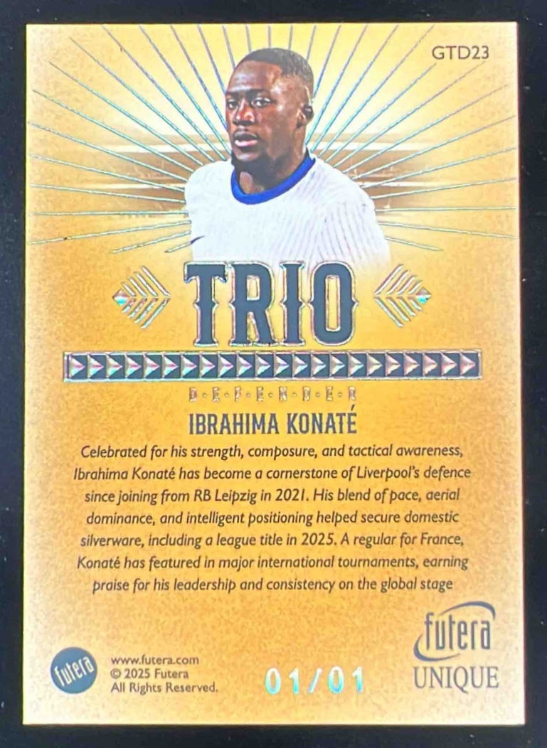 2025 Futera Unique Trio Gold Frame #GTD23 Ibrahima Konate 1/1