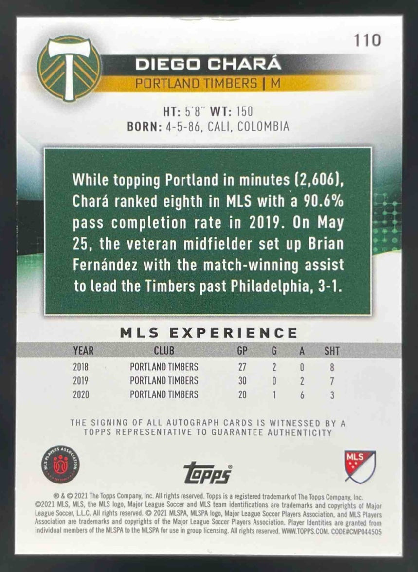 2021 Topps MLS Autographs #110 Diego Chara Auto
