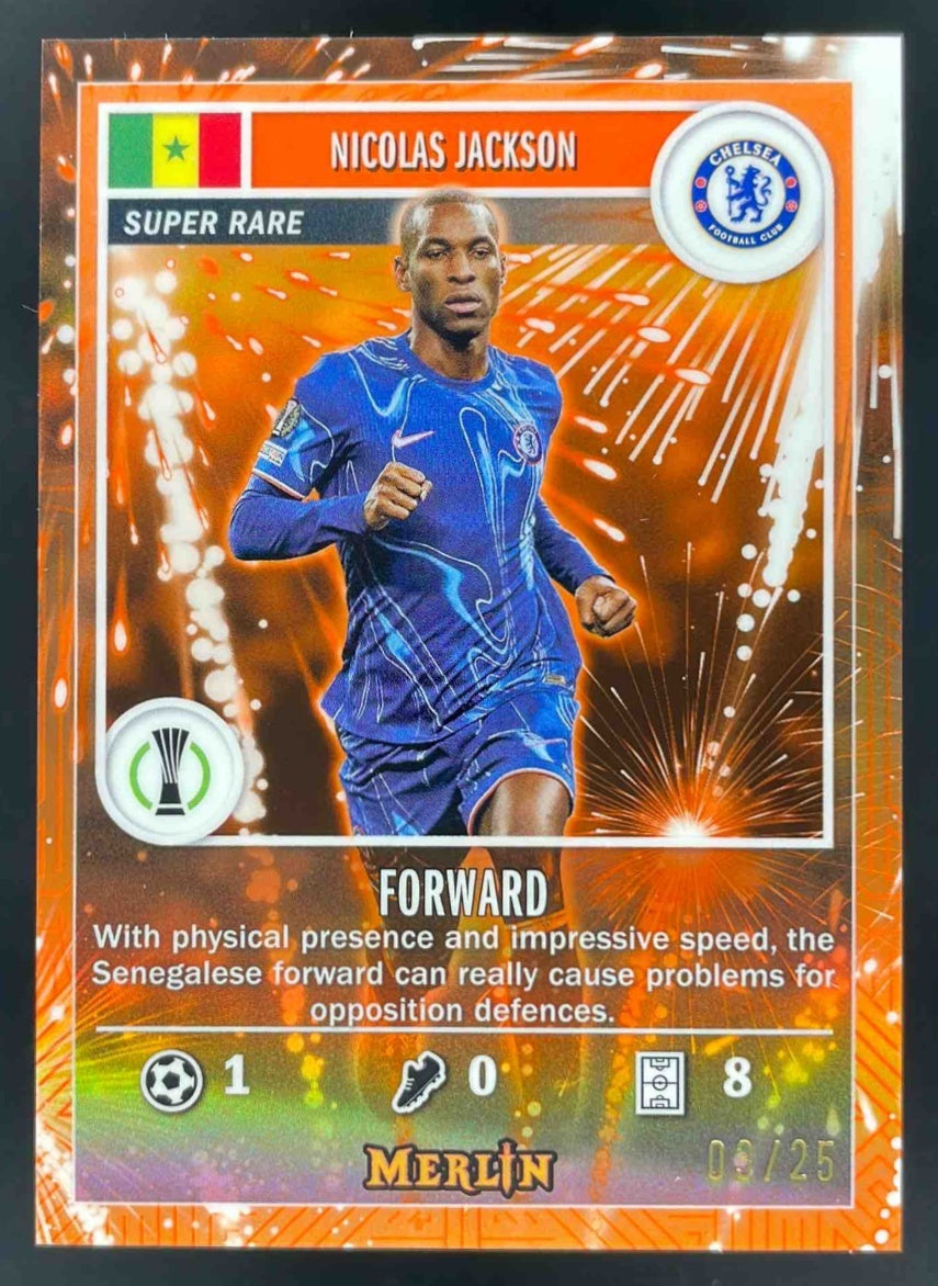 2024-25 Topps Merlin Chrome Gamers Orange Fireworks #MG-45 Nicolas Jackson /25