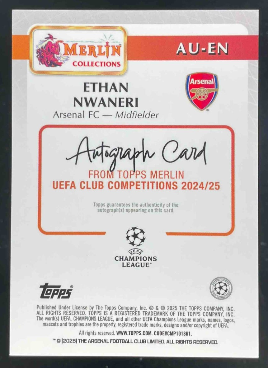 2024-25 Topps Merlin Chrome UEFA Green #AU-EN Ethan Nwaneri Auto /99