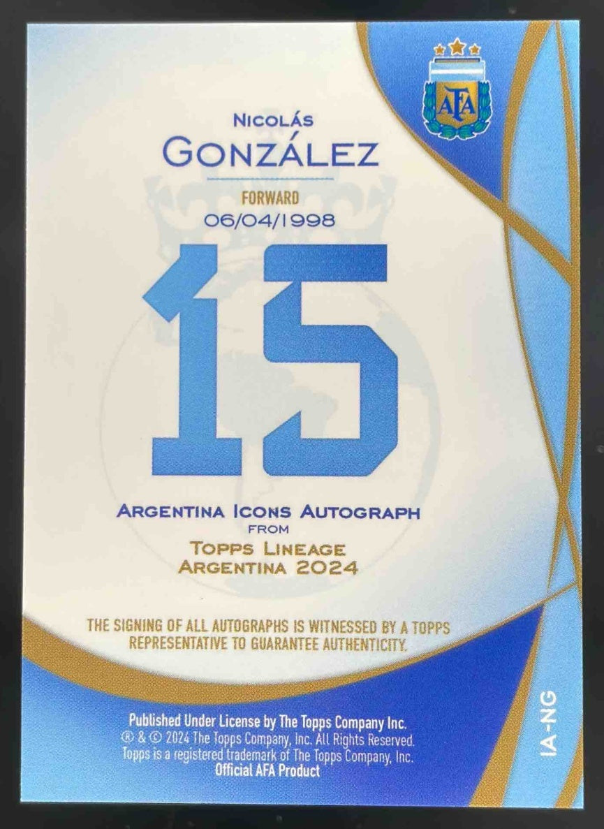 2024 Topps Argentina Icons Autograph Nicolas Gonzalez Auto /10