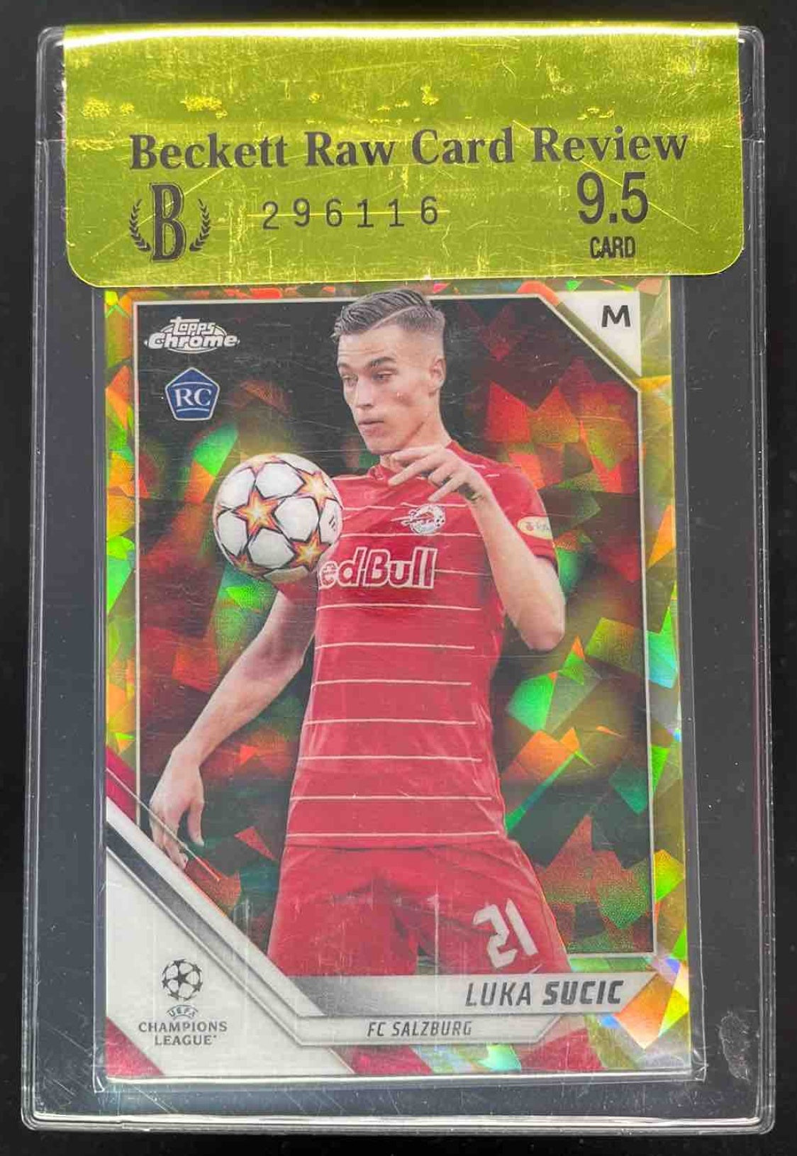 2021 Topps Chrome Sapphire Yellow #197 Luka Sucic /99 Beckett Review 9.5