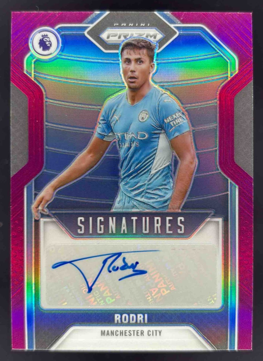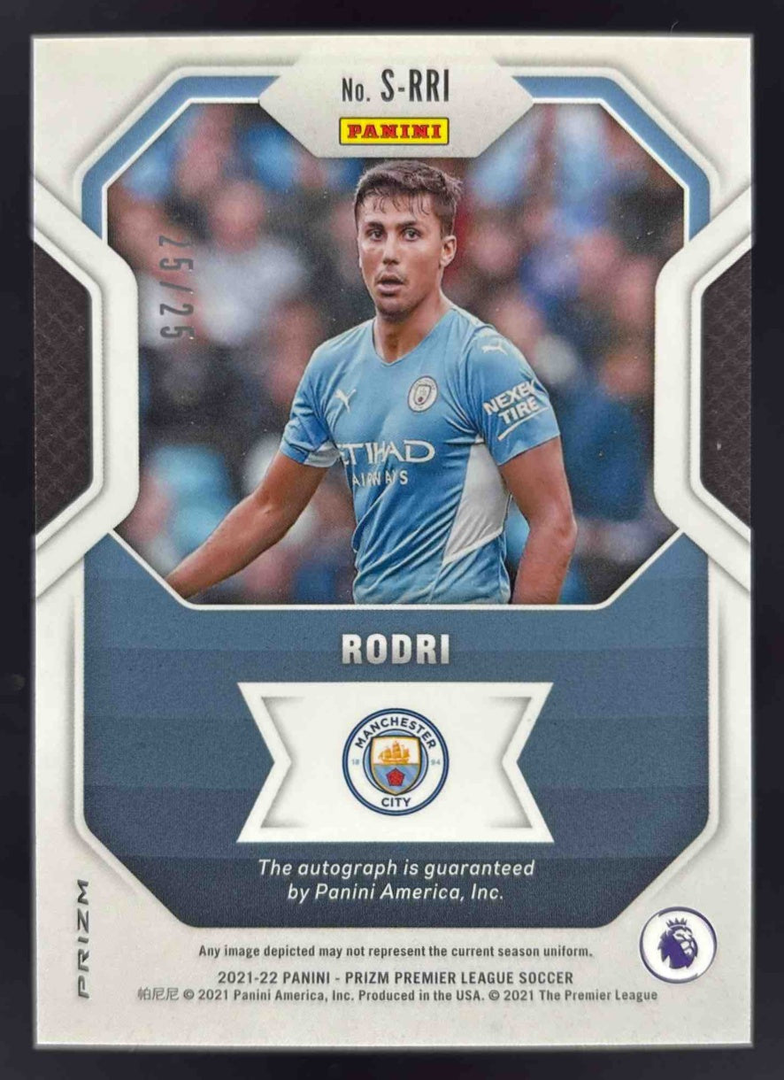 2021 Panini Prizm Premier League Signatures Prizms Purple #S-RRI Rodri Auto /25