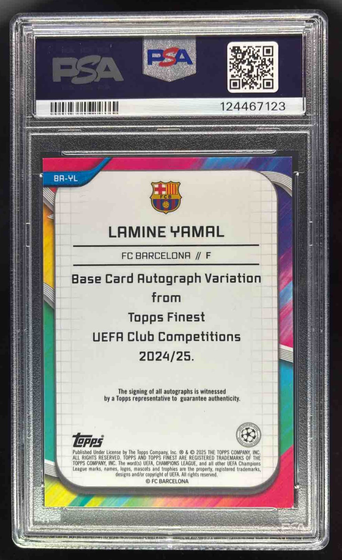 2024 Topps Finest Club Competitions Gold Refractor Lamine Yamal Auto /50 PSA 9