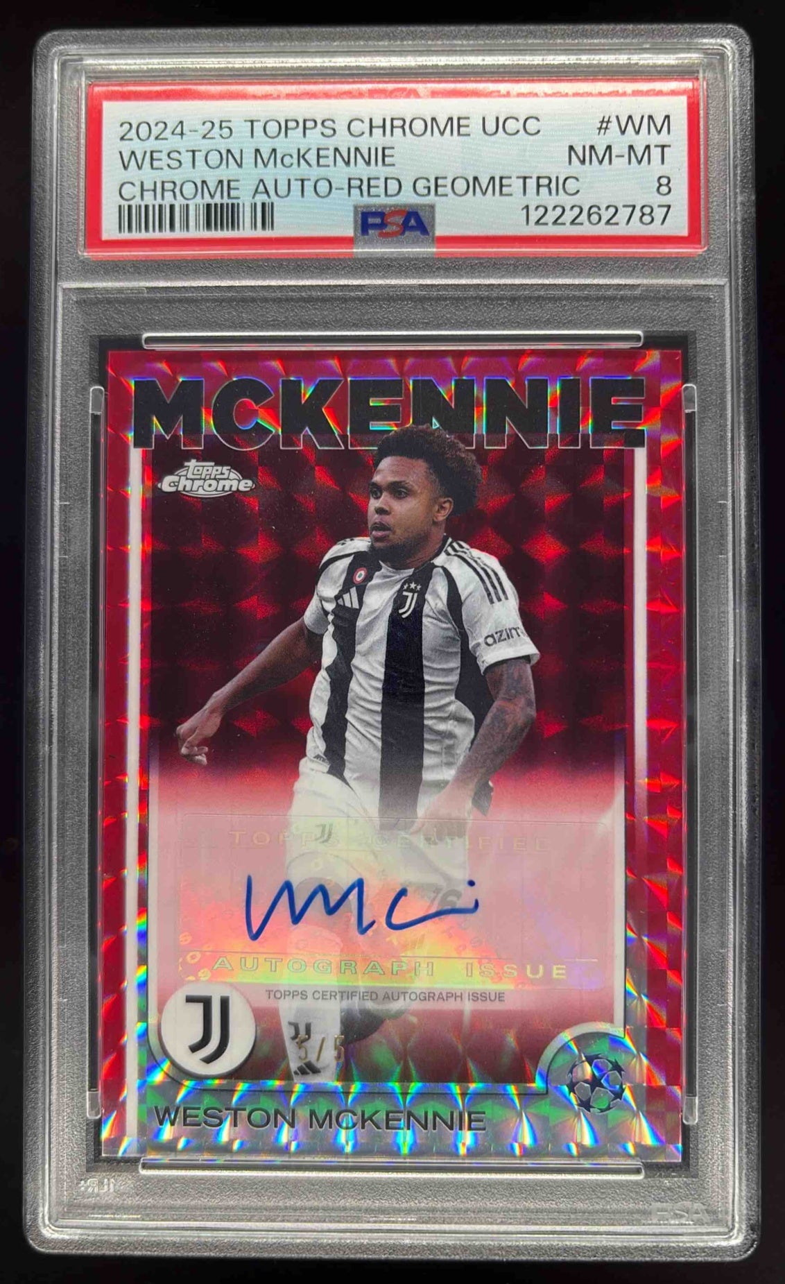 2024-25 Topps Chrome Red Geometric Refractor #CAWM Weston McKennie Auto /5 PSA 8