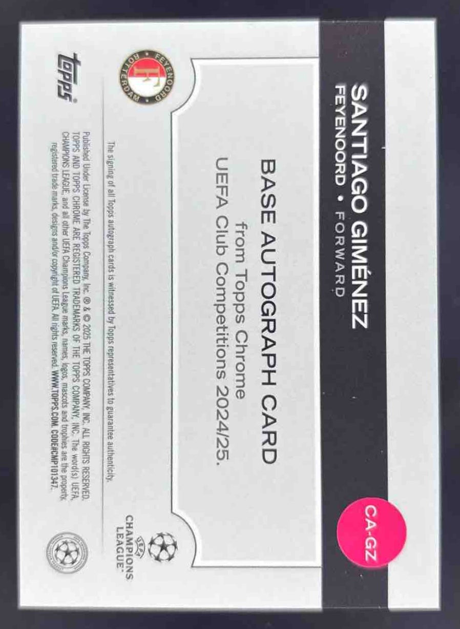 2024-25 Topps Chrome UEFA Aqua Lava Refractor #CA-GZ Santiago Gimenez Auto /199