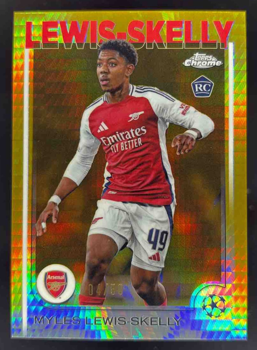 2024-25 Topps Chrome UEFA Gold Prism Refractor #154 Myles Lewis-Skelly RC /50