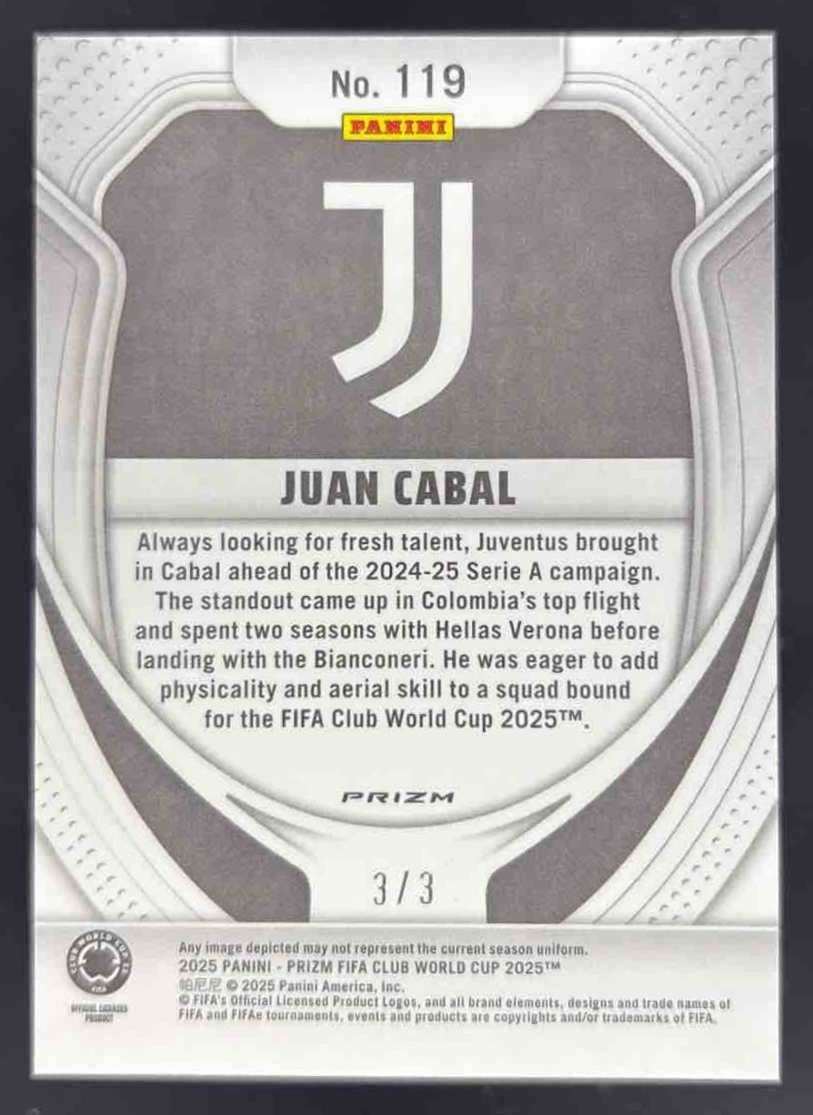 2025 Panini Prizm FIFA Club World Cup Gold Shimmer Prizm #119 Juan Cabal /3