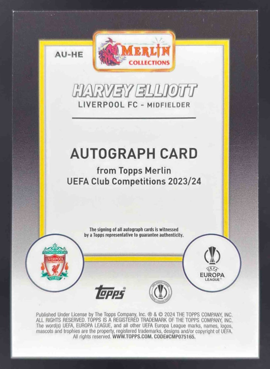 2023-24 Topps Chrome Merlin UEFA Wave Refractor #AU-HE Harvey Elliott Auto /150