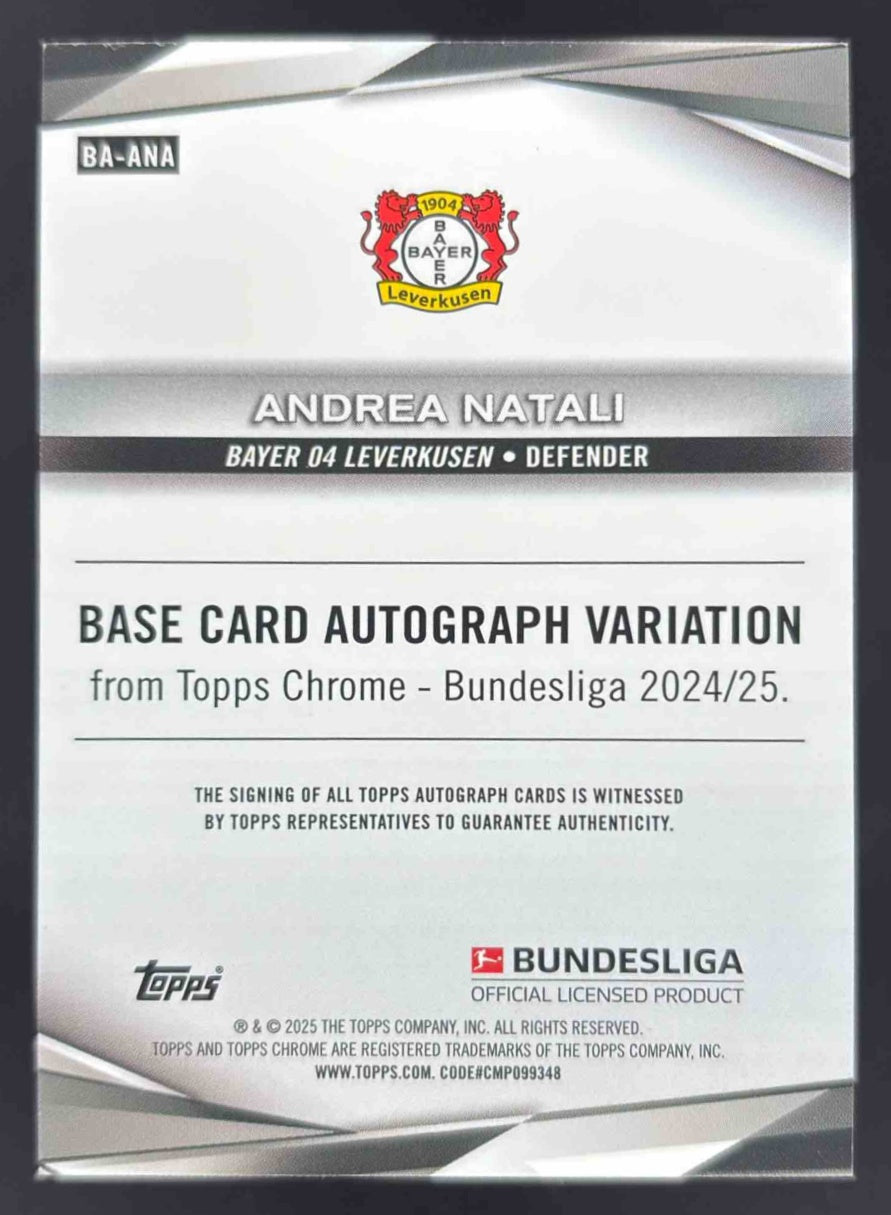 2024-25 Topps Chrome Bundesliga Yellow Refractor #BA-ANA Andrea Natali Auto /75