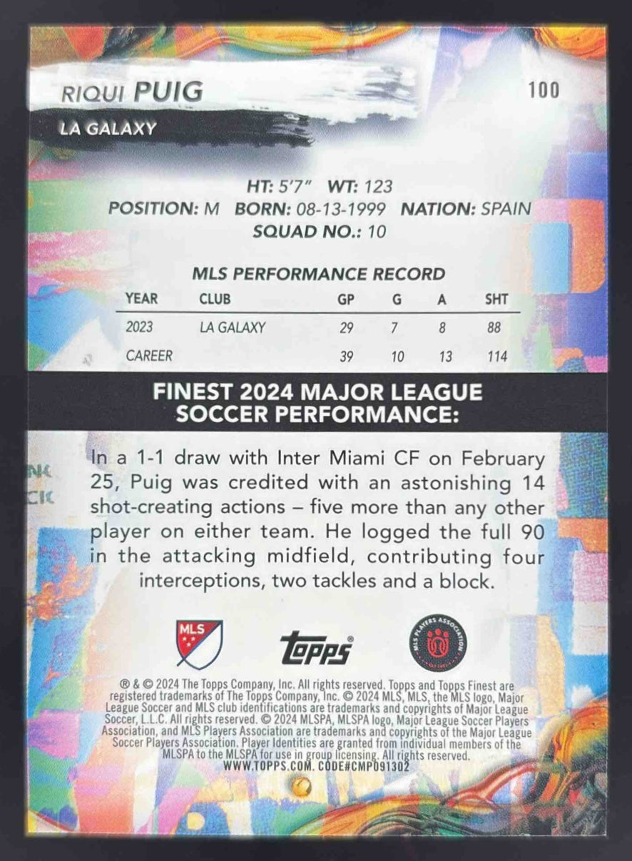 2024 Topps Finest MLS Holo Glow Orange Refractor #100 Riqui Puig /25