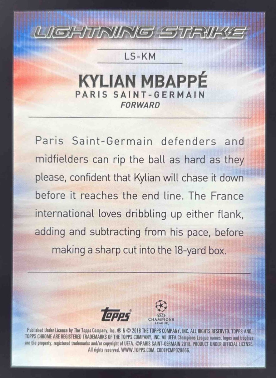 2017 Topps Chrome UEFA Champions League Lightning Strike #LS-KM Kylian Mbappe