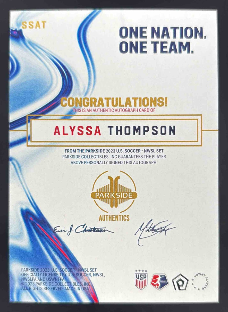 2023 Parkside NWSL One Nation One Team USA Autograph Alyssa Thompson Auto