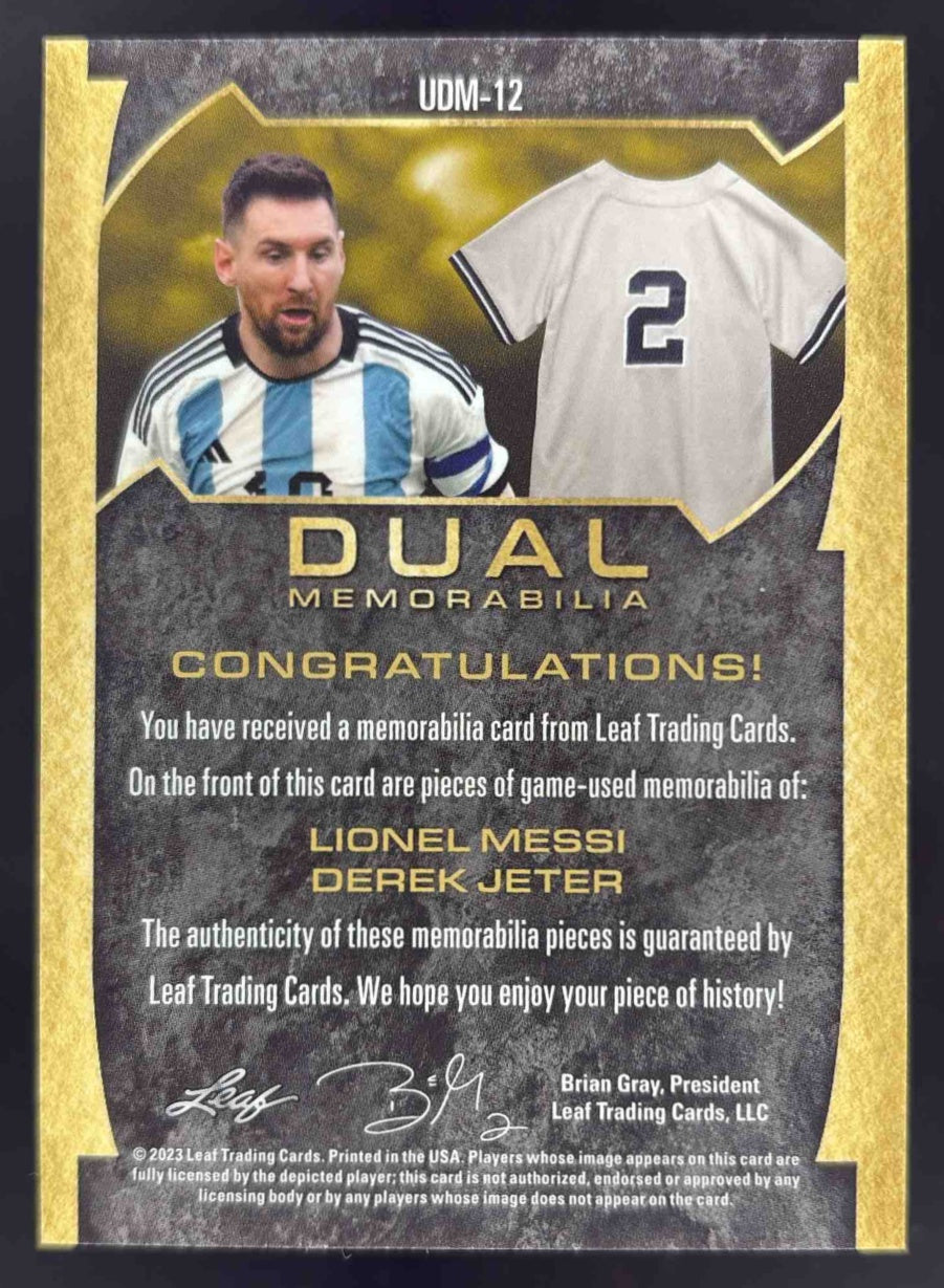 2022 Leaf Ultimate Ultimate Dual Memorabilia Navy Lionel Messi Derek Jeter /25