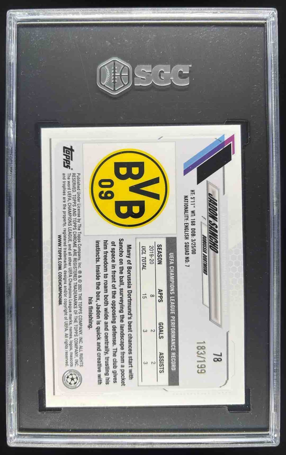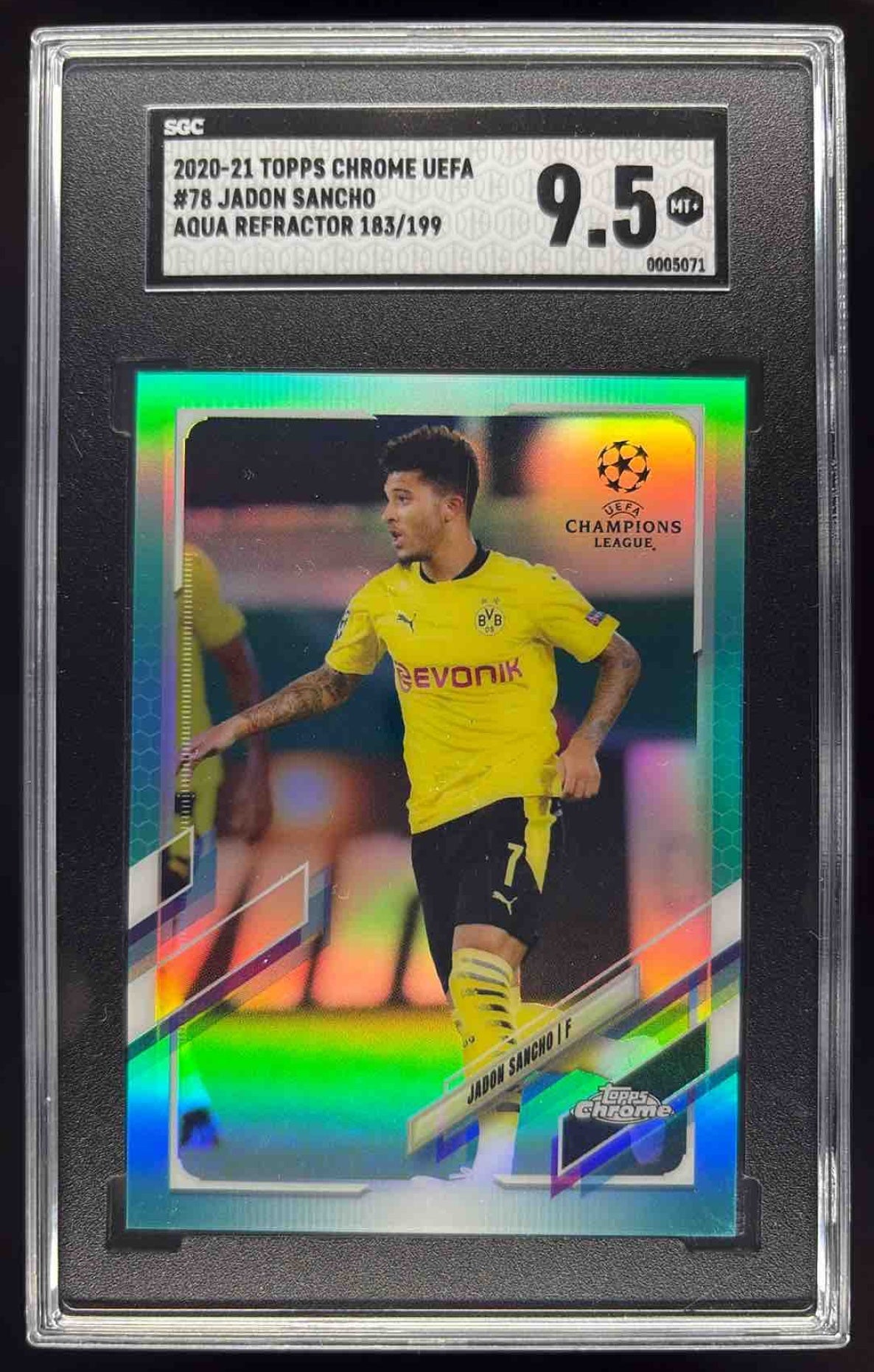 2020-21 Topps Chrome UEFA Champions League Aqua #78 Jadon Sancho /199 SGC 9.5