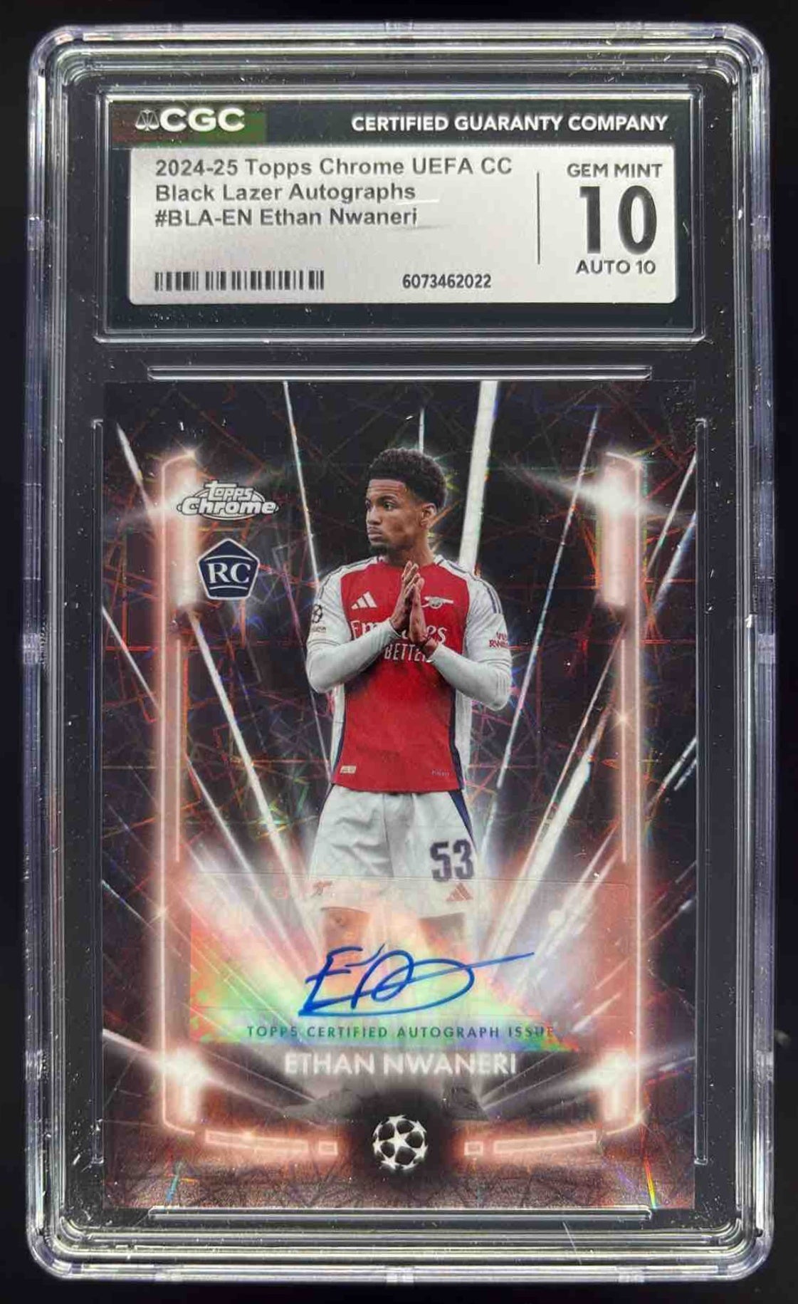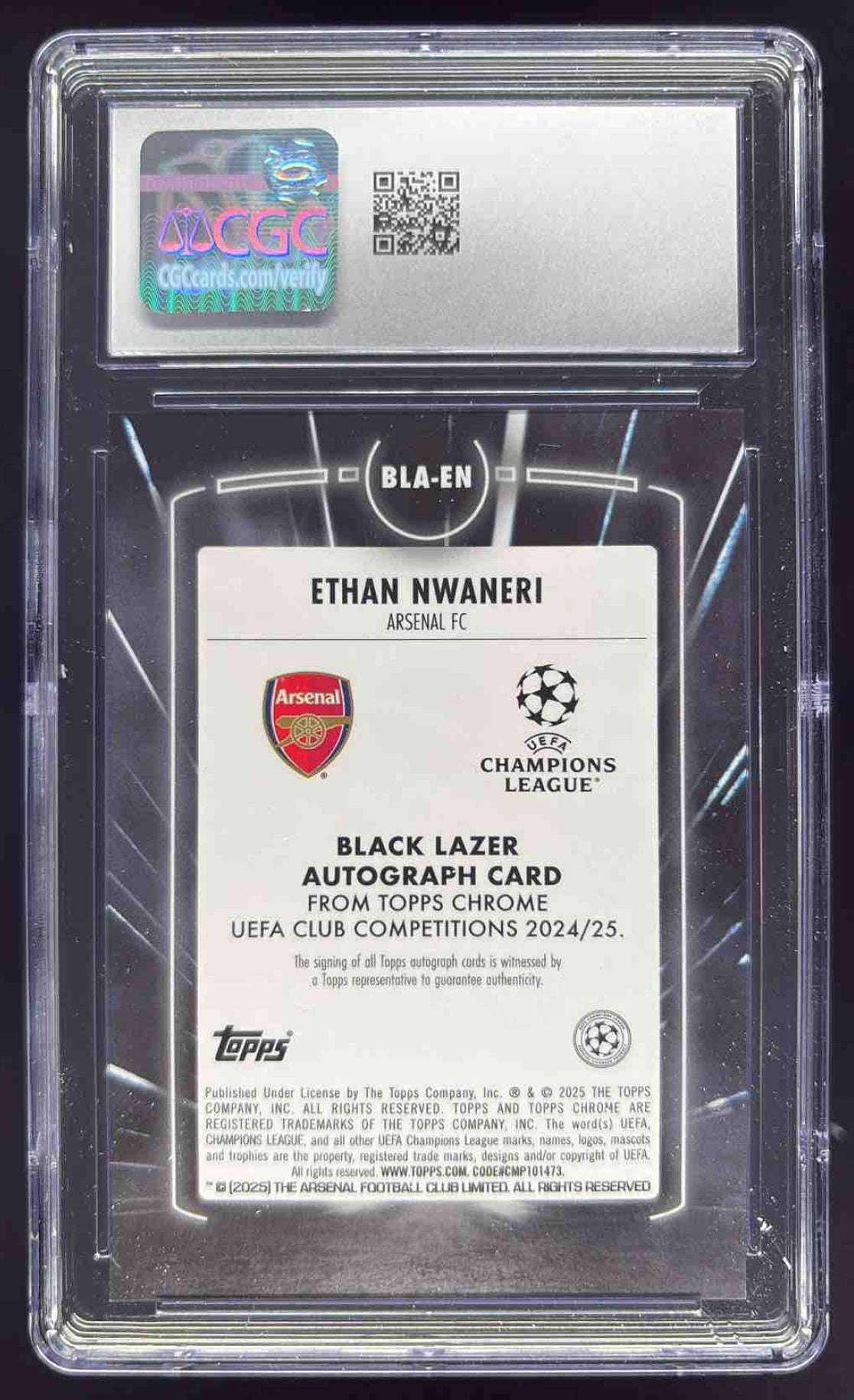 2024-25 Topps Chrome Black Lazer Autographs #BLA-EN Ethan Nwaneri RC Auto CGC 10