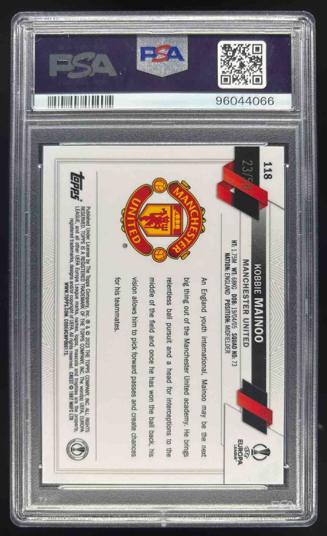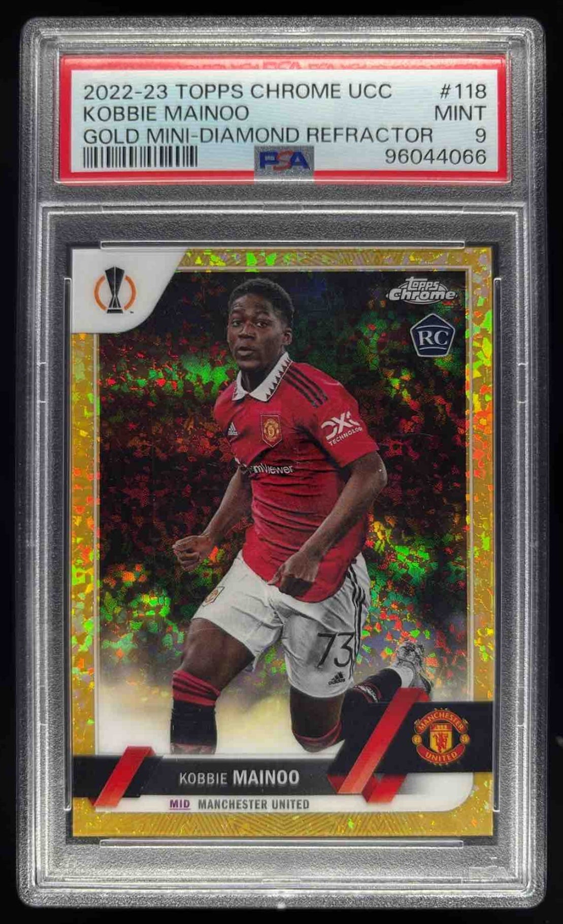 2022 Topps Chrome Gold Mini Diamond Refractor #118 Kobbie Mainoo RC /50 PSA 9