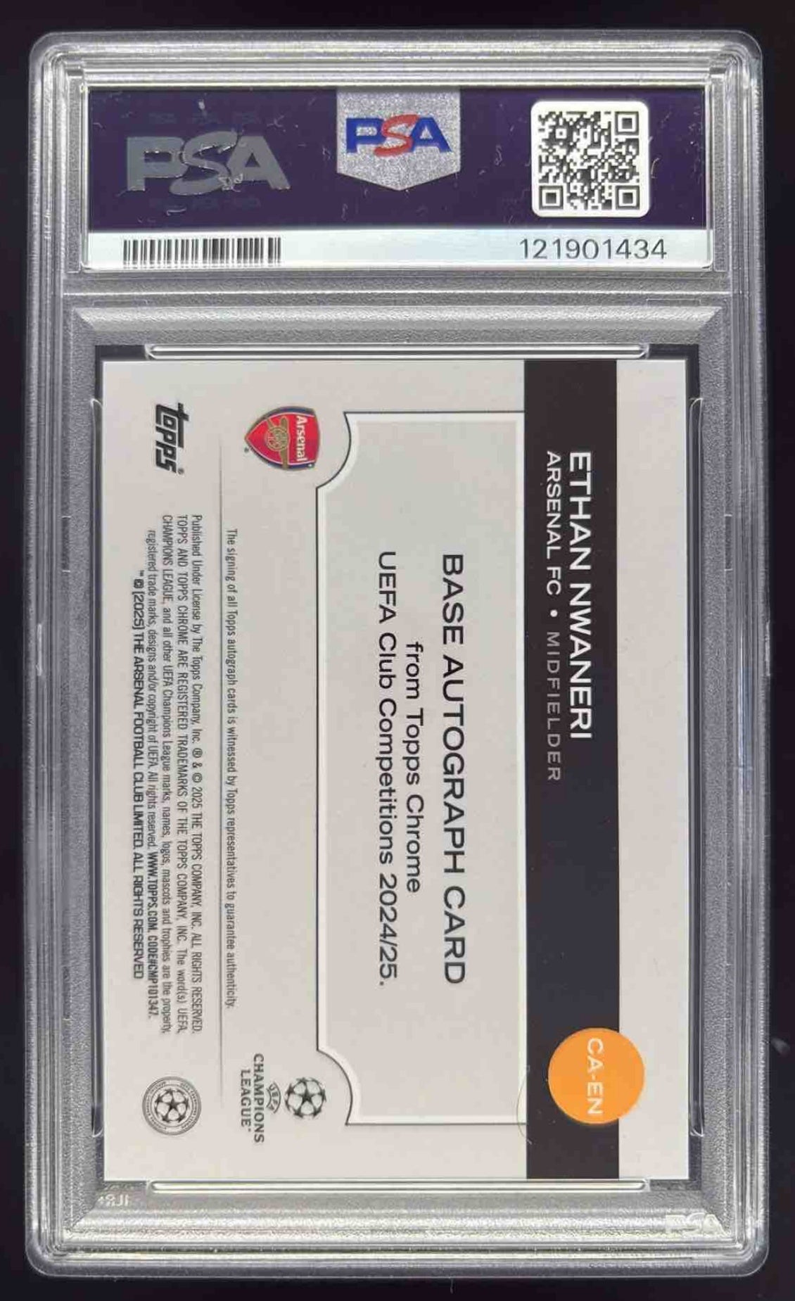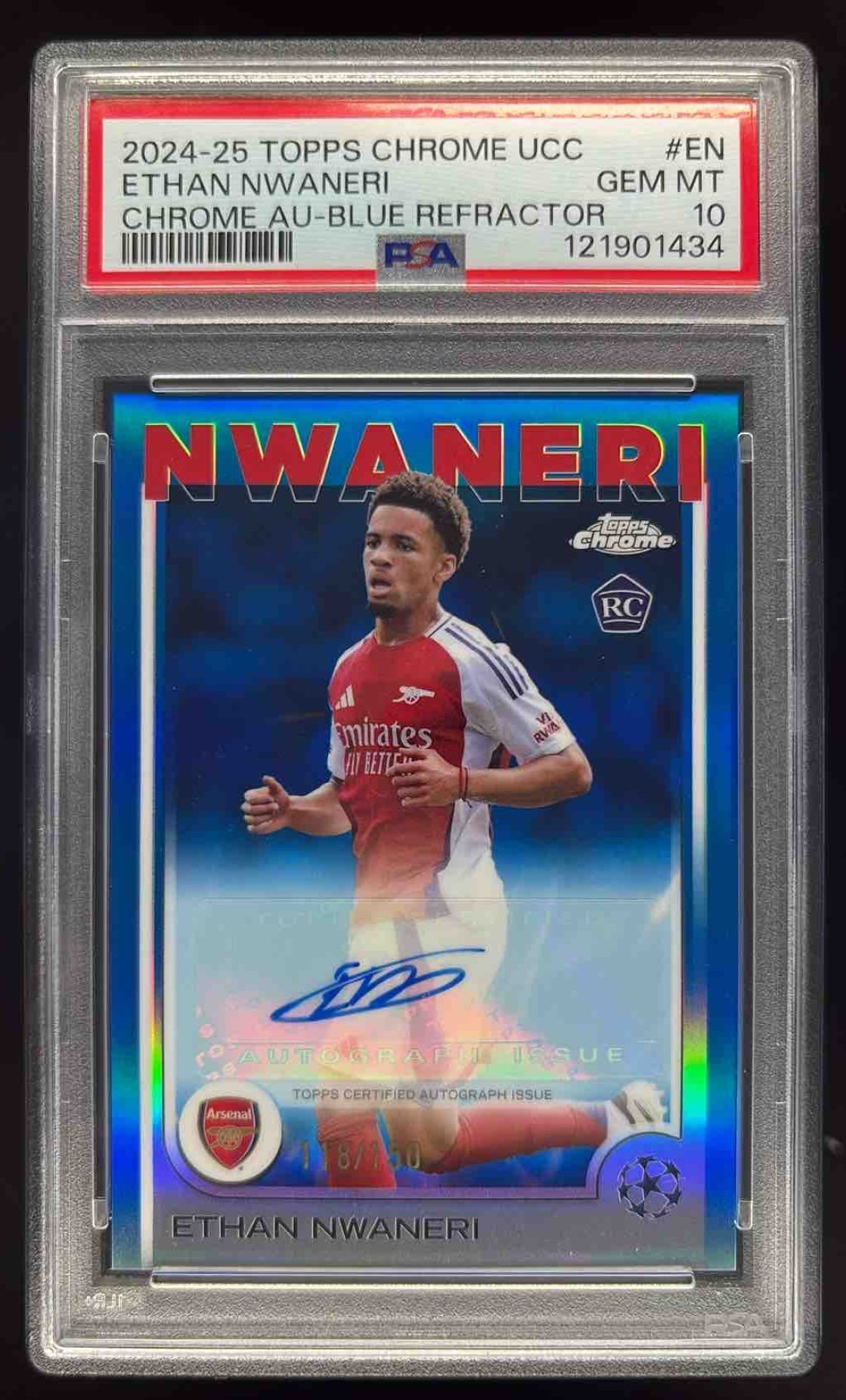 2024-25 Topps Chrome Blue Refractor #CA-EN Ethan Nwaneri RC Auto /150 PSA 10