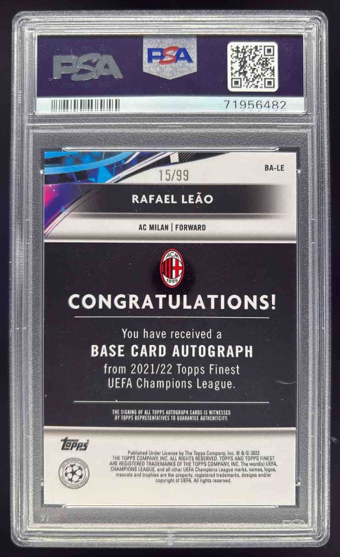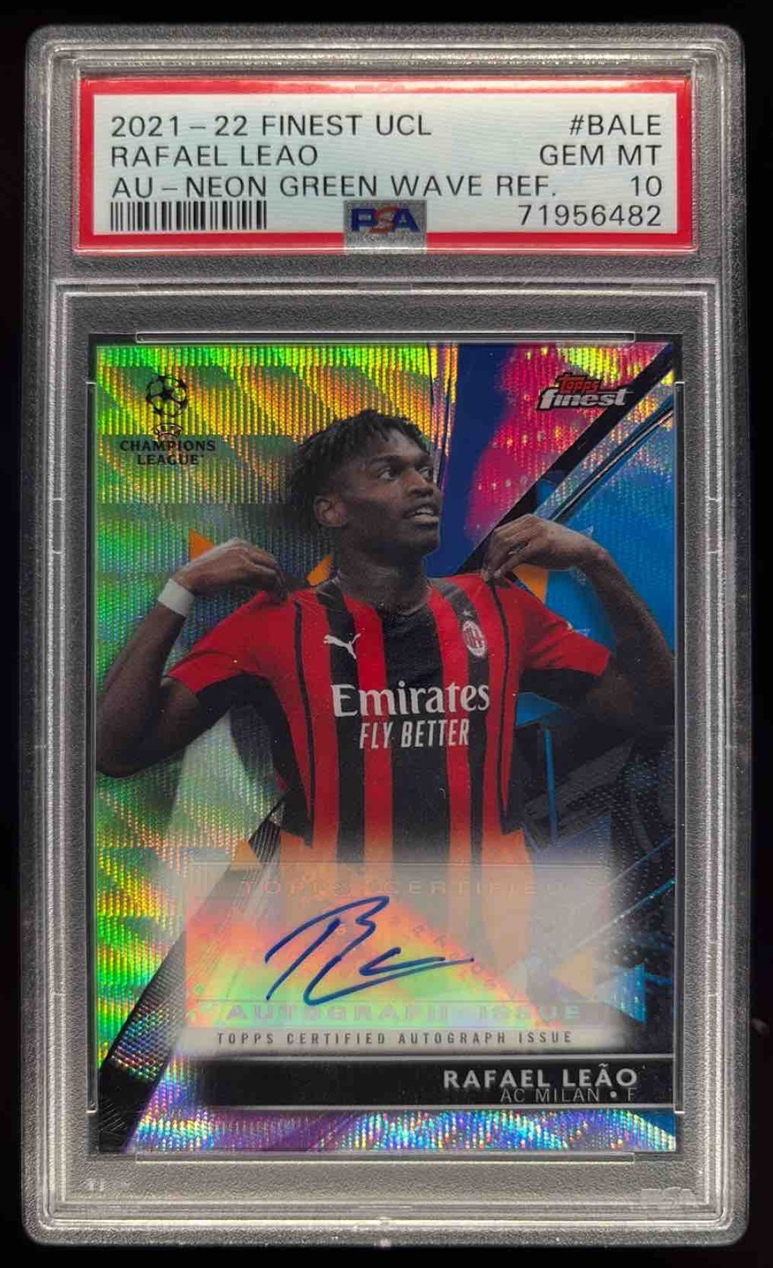 2021 Topps Finest Neon Green Wave #BA-LE Rafael Leao Auto /99 PSA 10