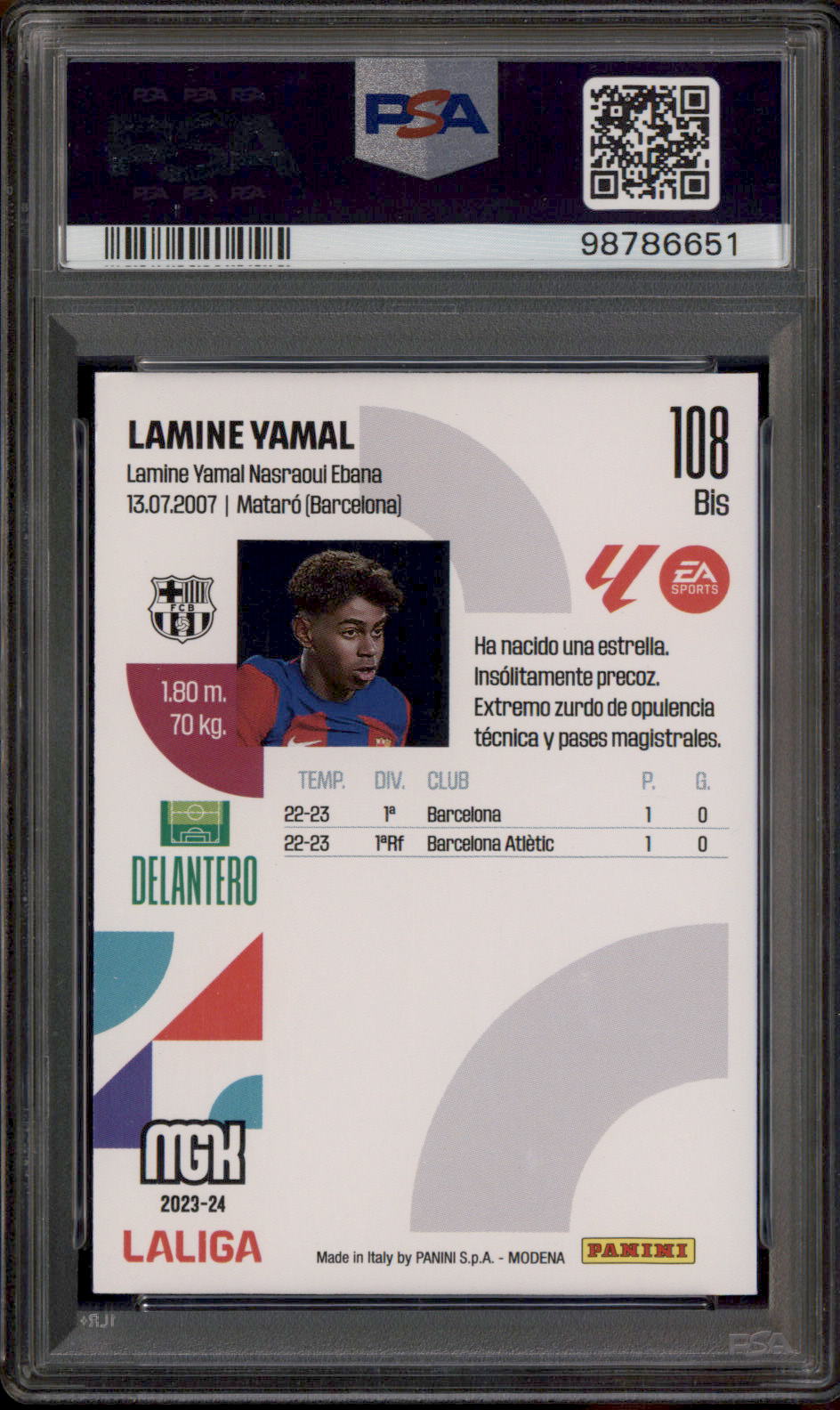 2023 Megacracks Liga EA Sports #108BIS Lamine Yamal PSA 8