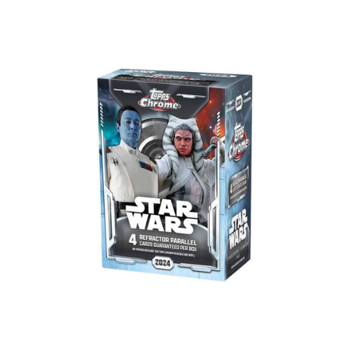 The chromium force is strong in 2024 Topps Chrome Star Wars, with another round of all your favorite characters from across the galaxy in brand new Chrome cards. This year, each pack contains five 2024 Star Wars Chrome cards, each box includes 4 Base Character cards Red, as well as Blaster Raywave Refractors."