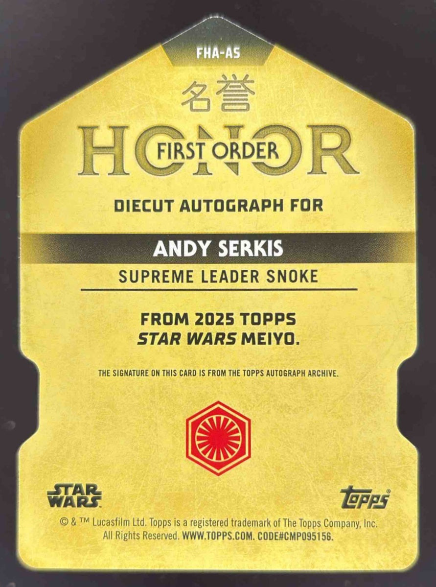 2025 Topps Star Wars Meiyo First Order Honor Die-Cut #FHAAS Andy Serkis Auto /50