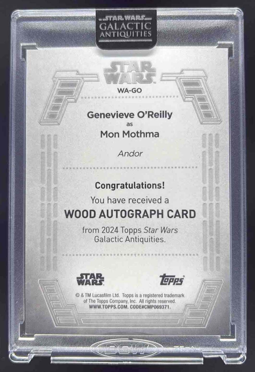 2024 Star Wars Galactic Antiquities Wood Orange Genevieve O'Reilly Auto /25