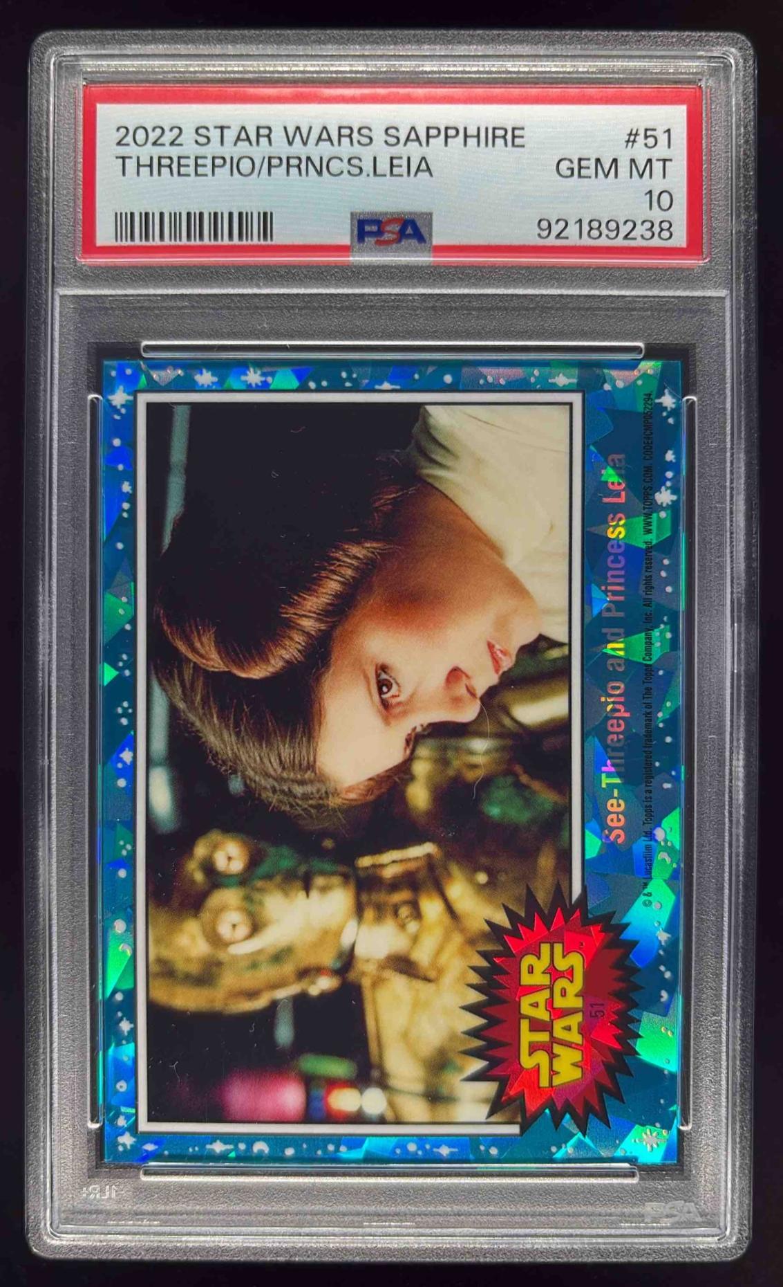 2022 Topps Chrome Sapphire Star Wars #51 See-Threepio and Princess Leia PSA 10