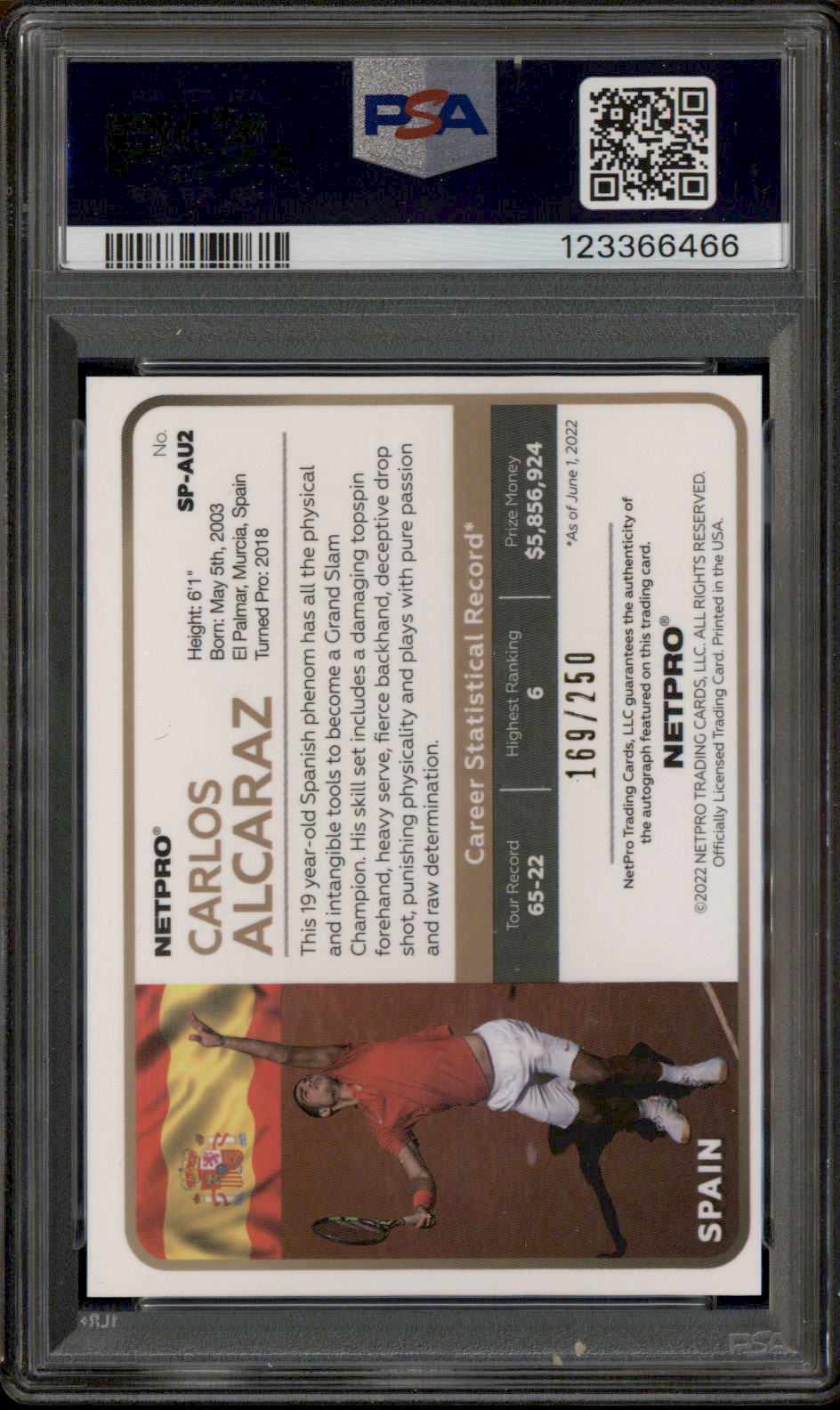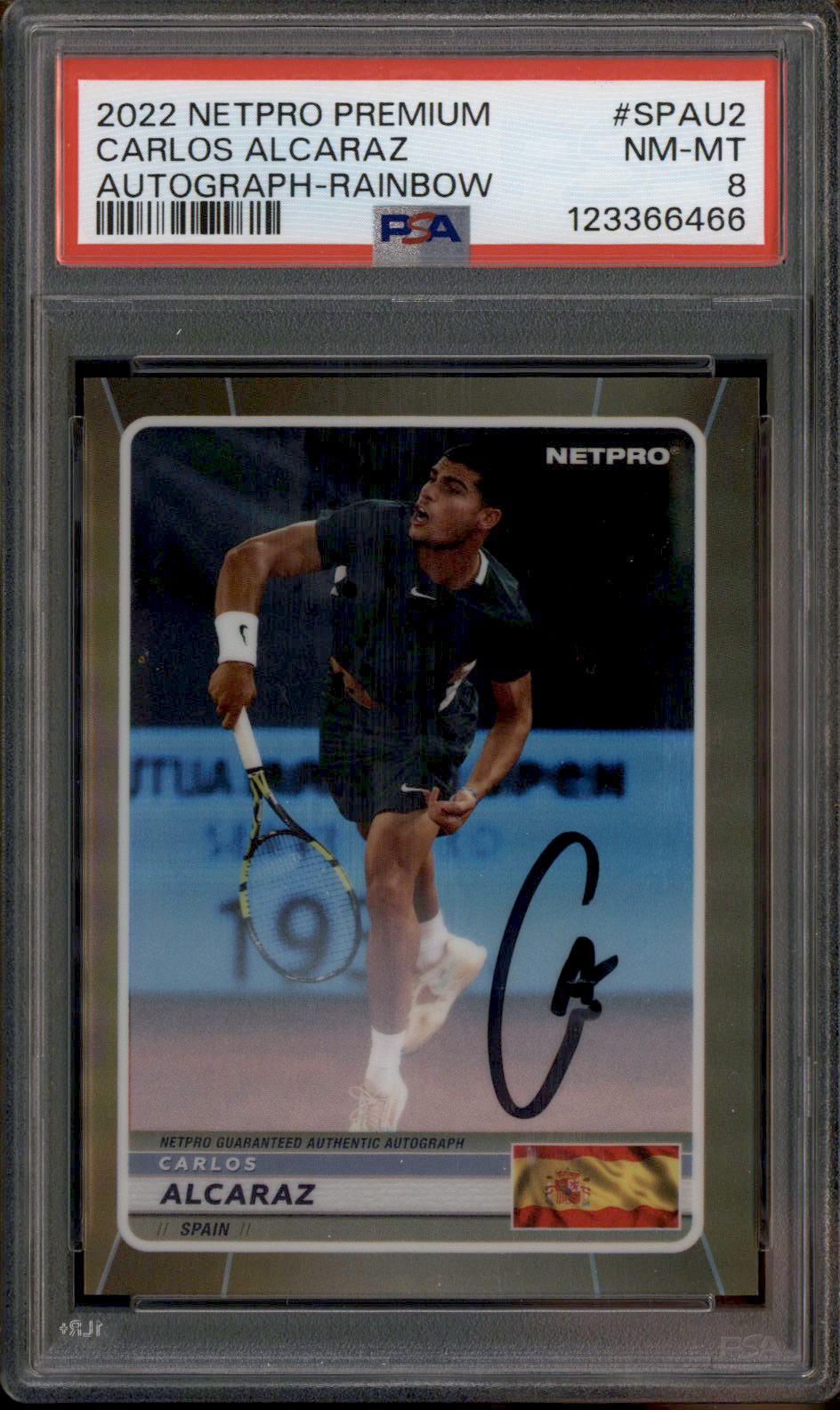 2022 Netpro Premium Autograph Rainbow #SPAU2 Carlos Alcaraz Auto /250 PSA 8