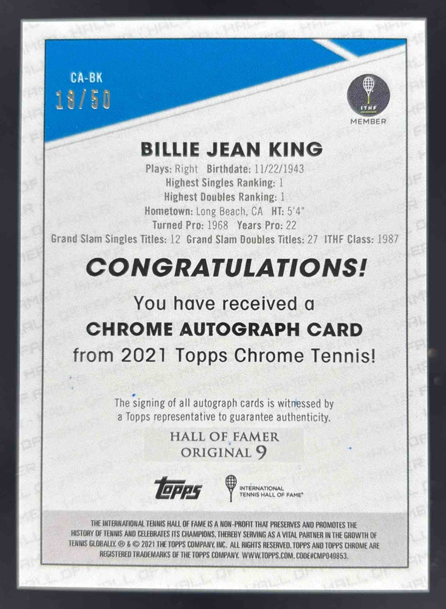 2021 Topps Chrome Chrome Autographs #CA-BK Billie Jean King Auto /50