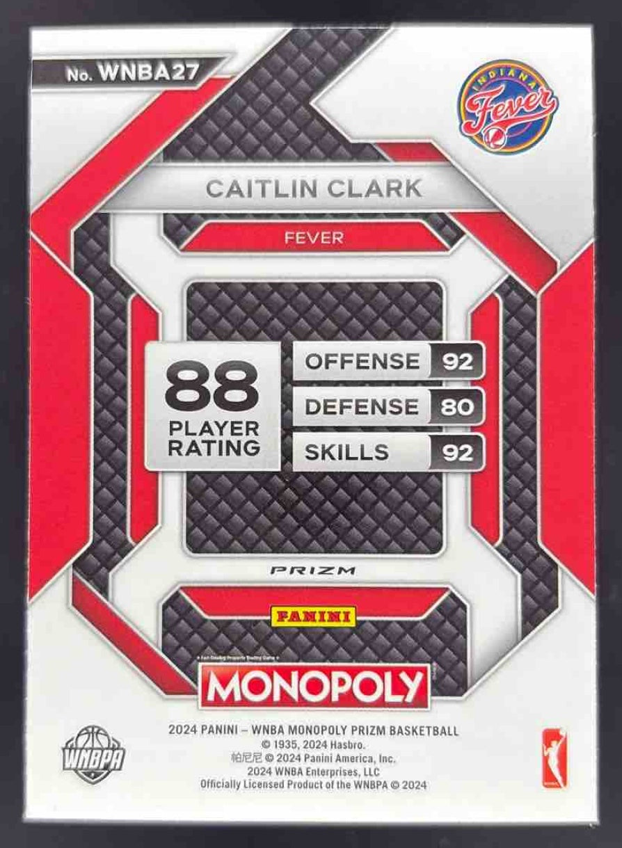 2024 Panini Prizm Monopoly WNBA Insert Red/Black Icons #WNBA27 Caitlin Clark RC