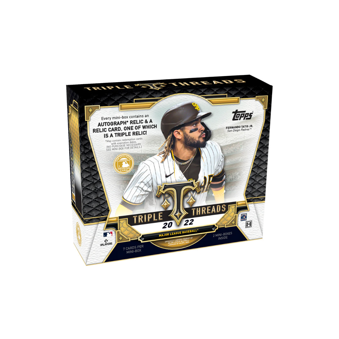 Arriving in stores in October, Triple Threads Baseball returns for 2022 featuring all-time retired greats, current stars of the game, and an elite rookie class. Showcasing an array of multi-relic cards, autograph relics and exclusive high-end hits, Triple Threads delivers game-used greatness. Each case is guaranteed to include a 1-of-1 Autograph Relic Card, and an Autograph Relic Combo Card featuring 3 or more players.