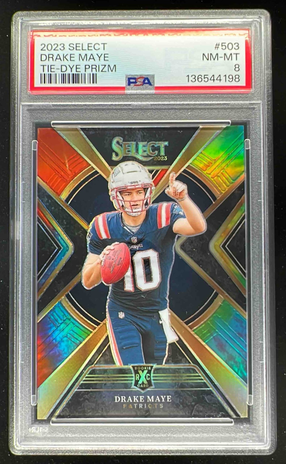 2023 Panini Select Tie Dye Prizms #503 Drake Maye XRC /25 PSA 8