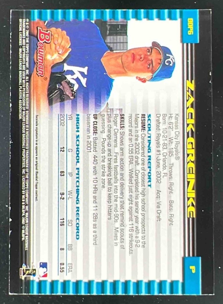 2002 Bowman Draft Picks & Prospects #BDP6 Zack Greinke RC