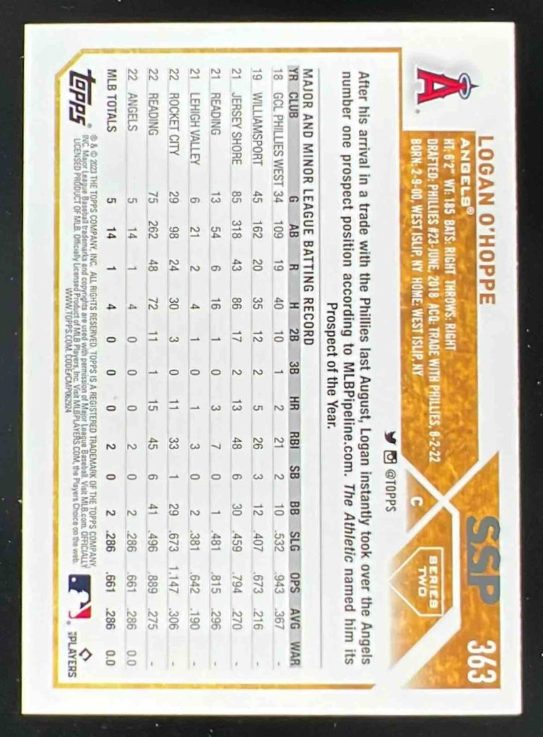 2023 Topps #363 Logan O'Hoppe RC Rookie SSP