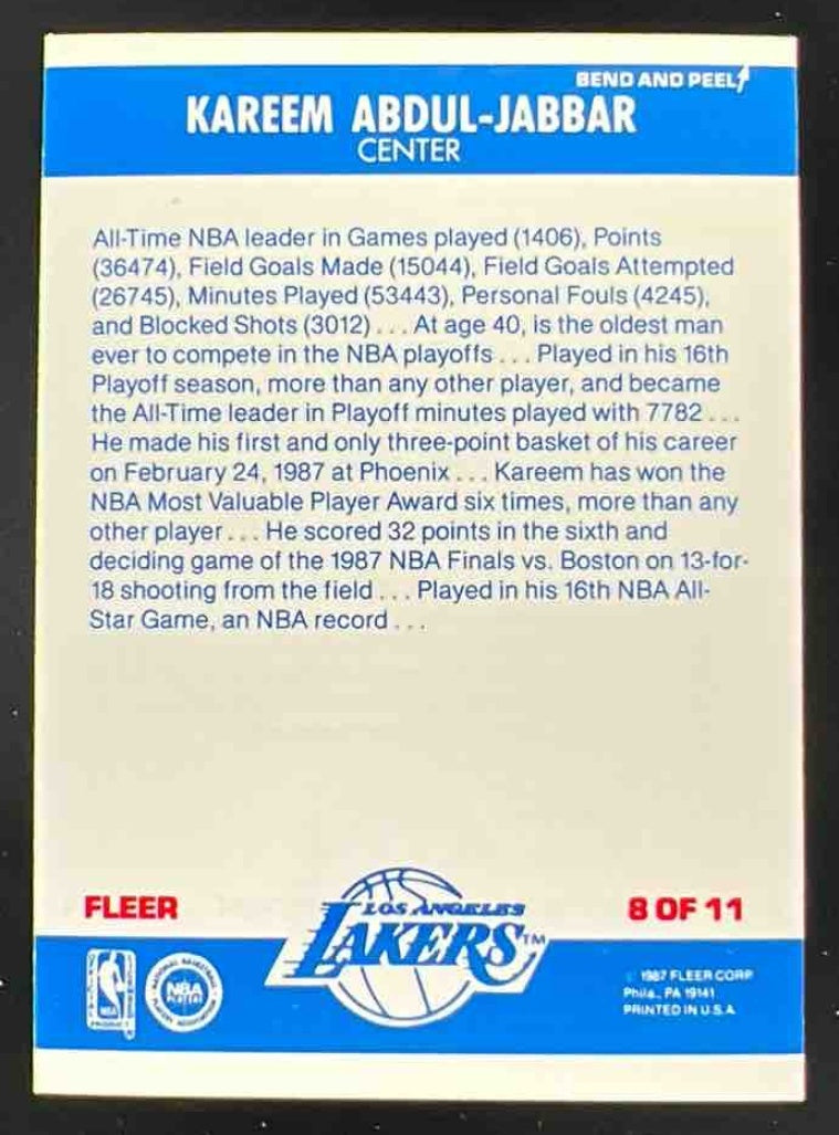 1987-88 Fleer Stickers #8 Kareem Abdul-Jabbar