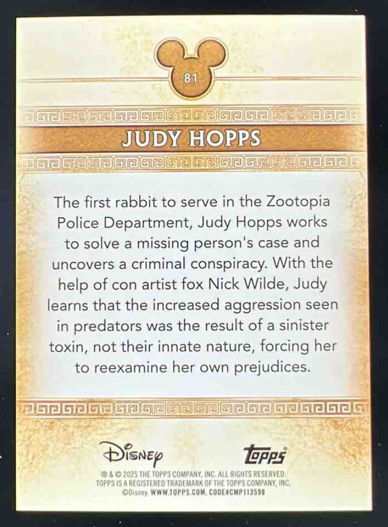 2025 Topps Mint Disney Gold Orange Foil #81 Judy Hopps /25
