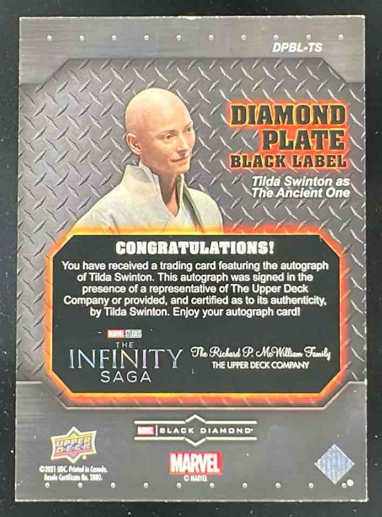 2021 UD Marvel Black Diamond Diamond Plate Autograph #TS Tilda Swinton Auto /49
