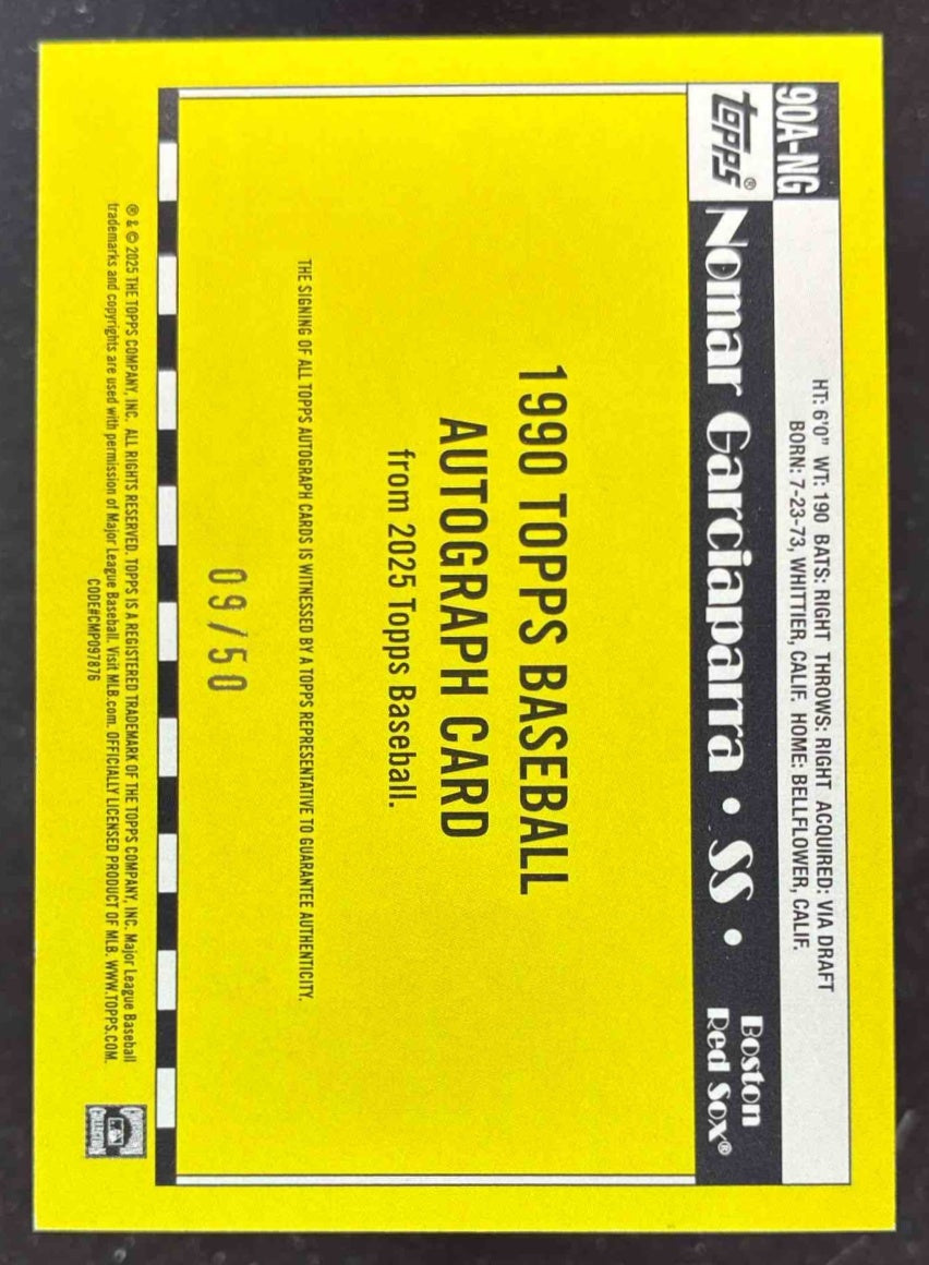 2025 Topps 1990 Autograph Gold #90A-NG Nomar Garciaparra Auto /50