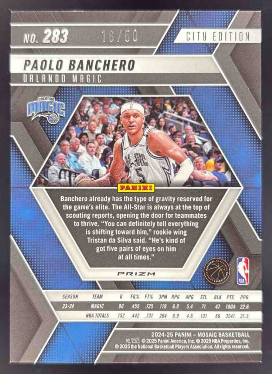 2024 Panini Mosaic Fast Break Purple Mosaic #283 Paolo Banchero City Edition /50