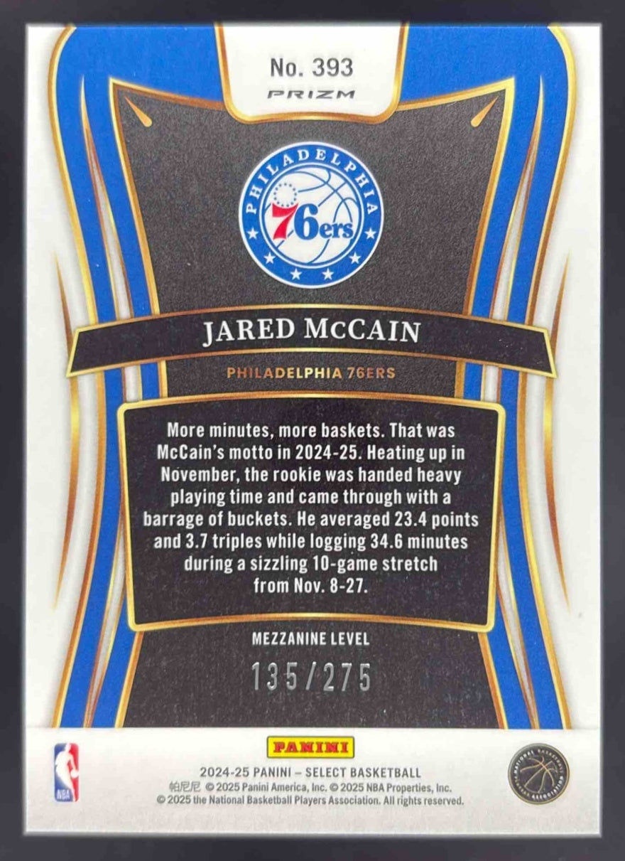 2024 Panini Select Mezzanine Orange Cracked Ice Prizm #393 Jared McCain RC /275