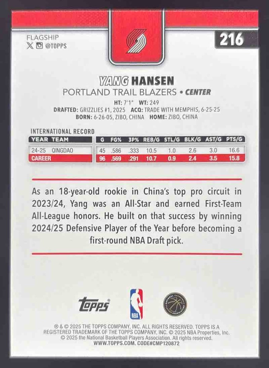 2025-26 Topps Gold #216 Yang Hansen RC /2025