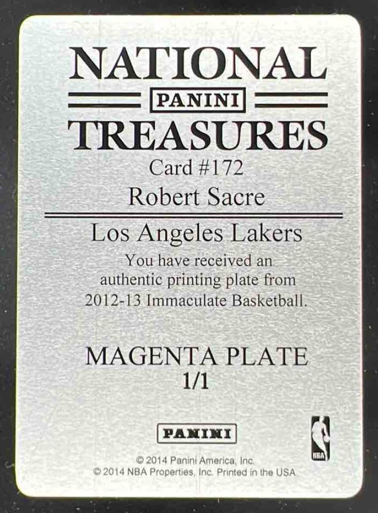 2012-13 Immaculate Printing Plates Magenta #172 Robert Sacre 1/1