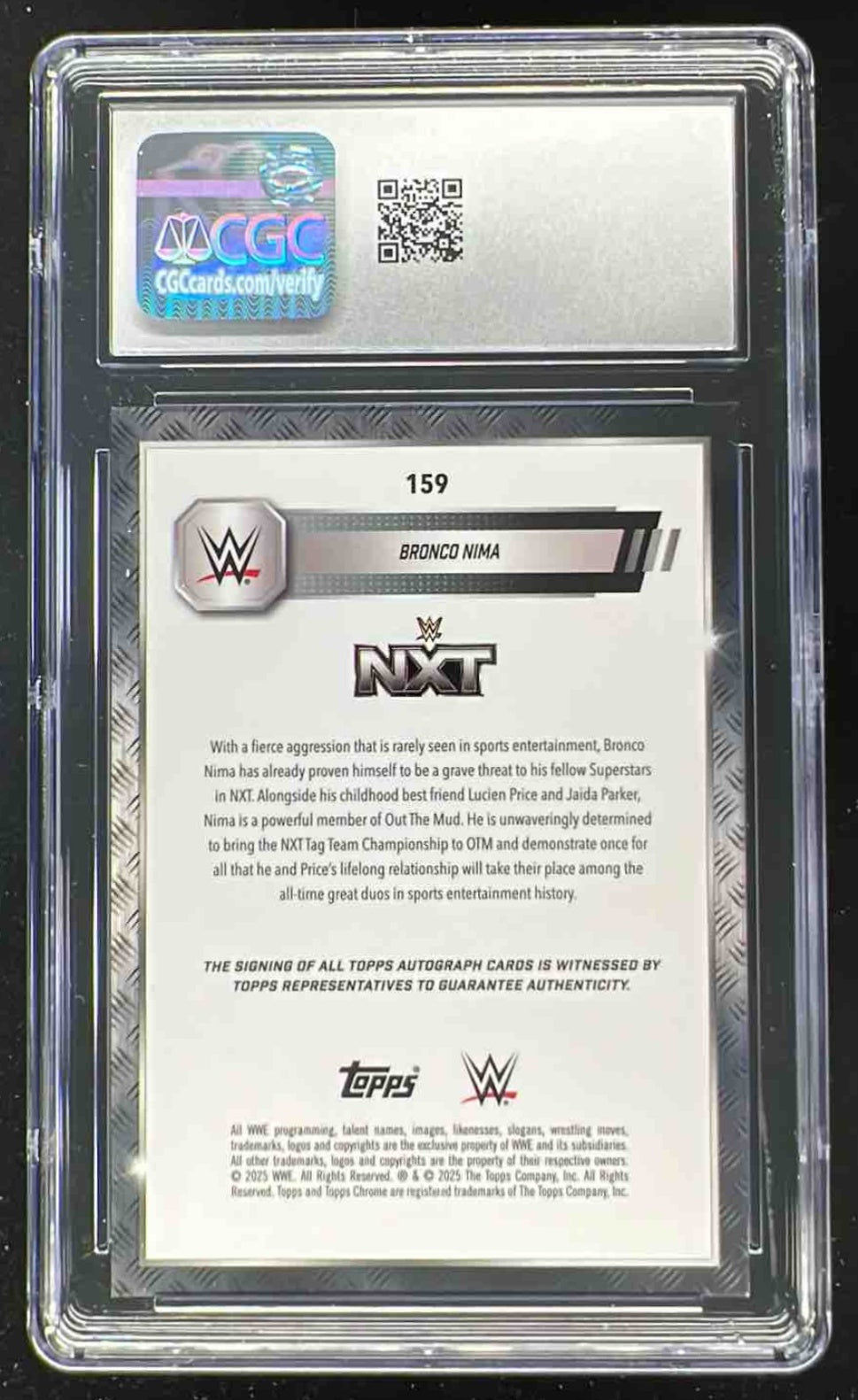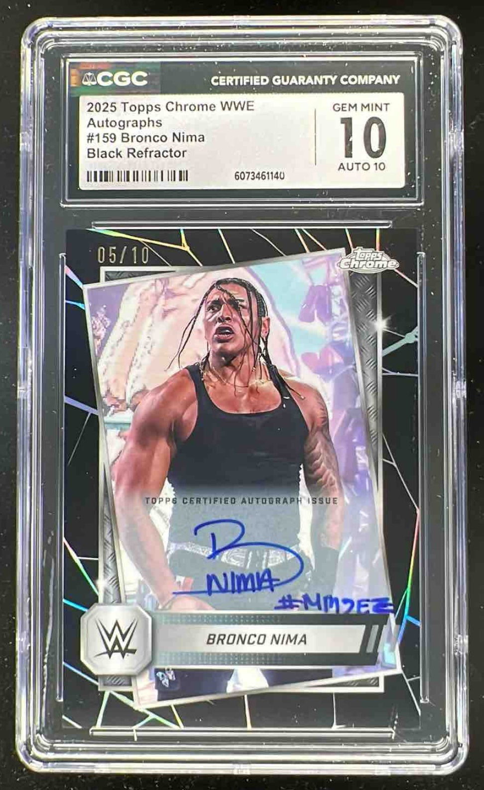 2025 Topps Chrome WWE Chrome Black Refractors #CLABC Bronco Nima Auto /10 CGC 10