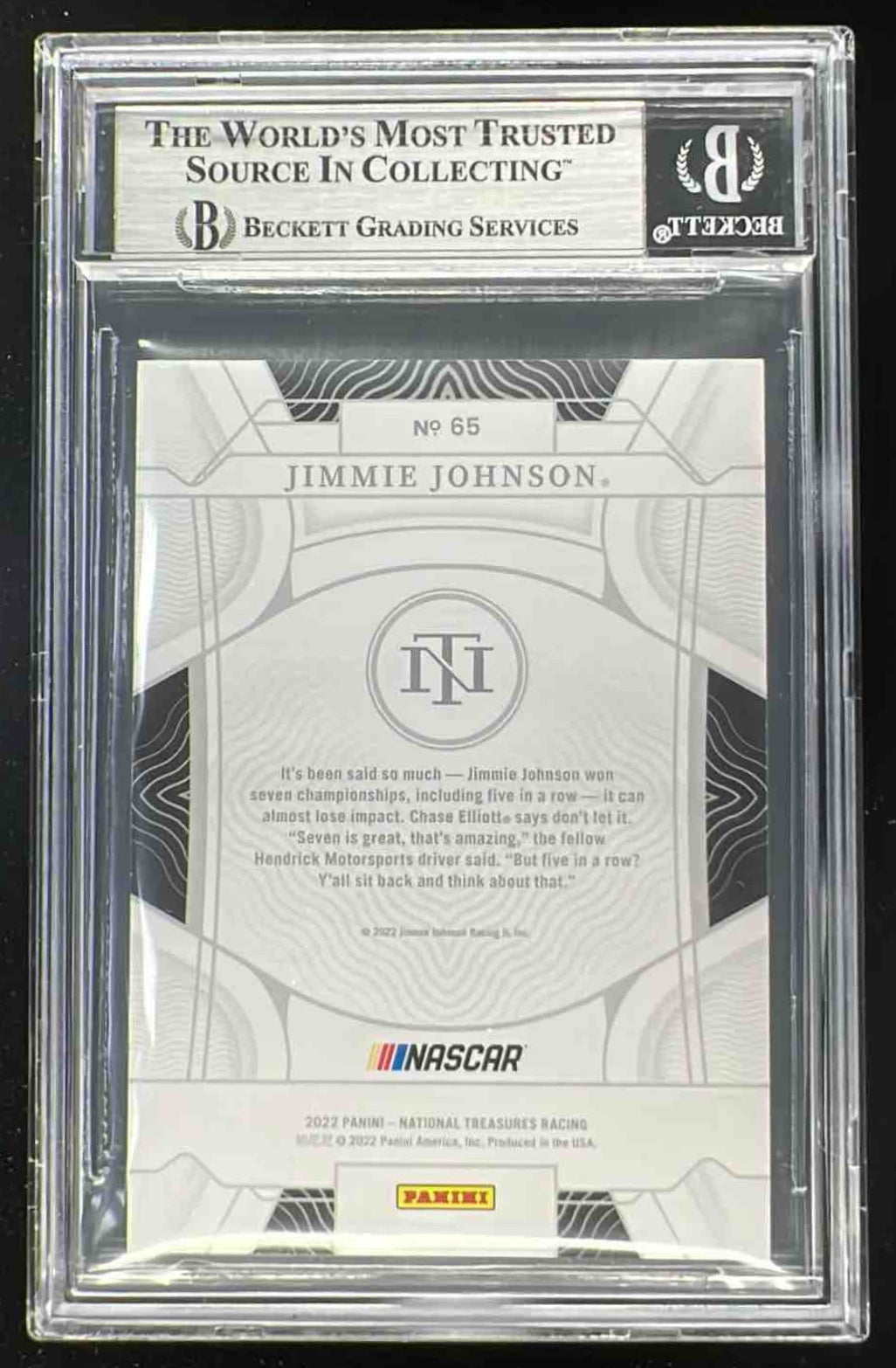 2022 Panini National Treasures Holo Gold #65 Jimmie Johnson /10 BGS 8.5